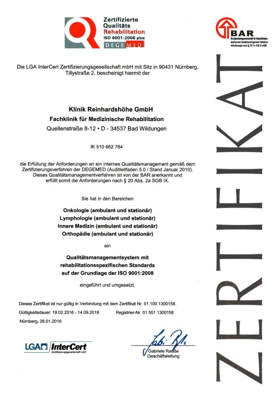 Die Klinik ist die erste und derzeit einzige deutsche Rehabilitationsklinik, die über ein zertifiziertes Wundmanagement und das Wundsiegel nach ICW e.V. verfügt